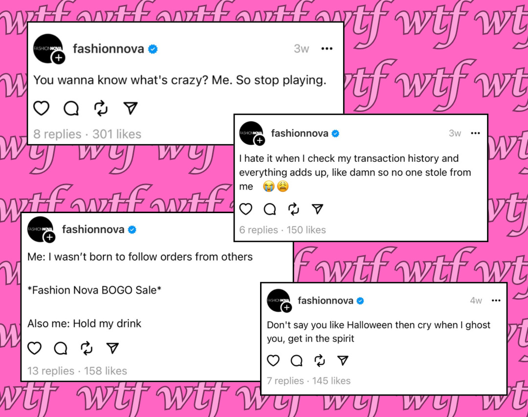 After Twitter nosedived in 2023 (nice one, Elon), brands like Fashion Nova carried the baton of cringey posts over to Instagram’s Threads. But it never really took off in the same way, leaving the industry to hunt for the next space to hijack. Enter community: something we desperately need but that most of us lack.