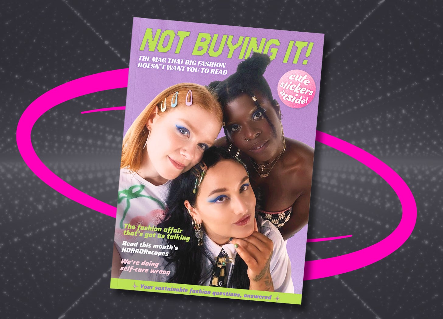 We’ve taken a familiar format we know and love - early 2000s mags with all the goss, play and freebies - to talk about the things we might shy away from, but deffo need to be saying! Get ready for some Oh Major Greenwashing (OMG) moments, and get your hands on our green sheen guide designed for babes who give a f*ck.